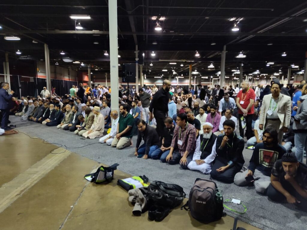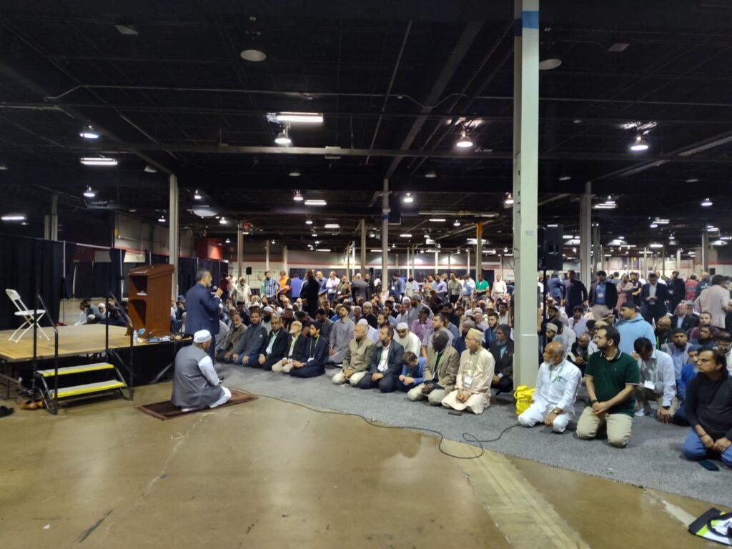 The convention paused for the Maghrib Prayer and Isha Prayer performed in Hall A.
