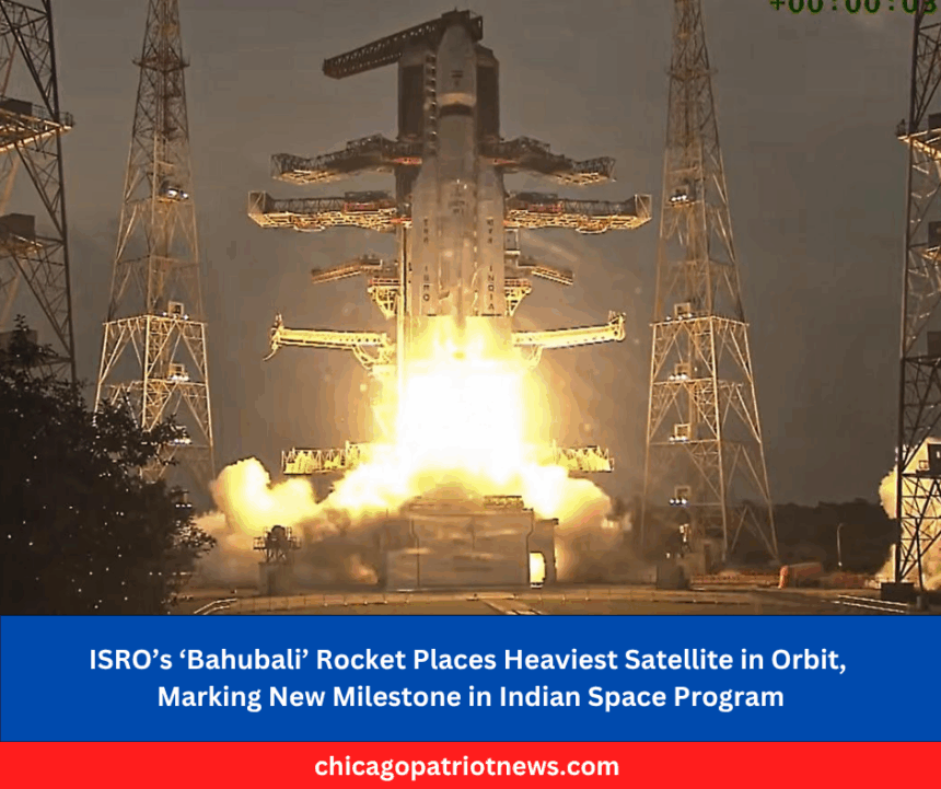 Chicago Patriot News Media > Blog > World News > ISRO’s ‘Bahubali’ Rocket Places Heaviest Satellite in Orbit, Marking New Milestone in Indian Space Program