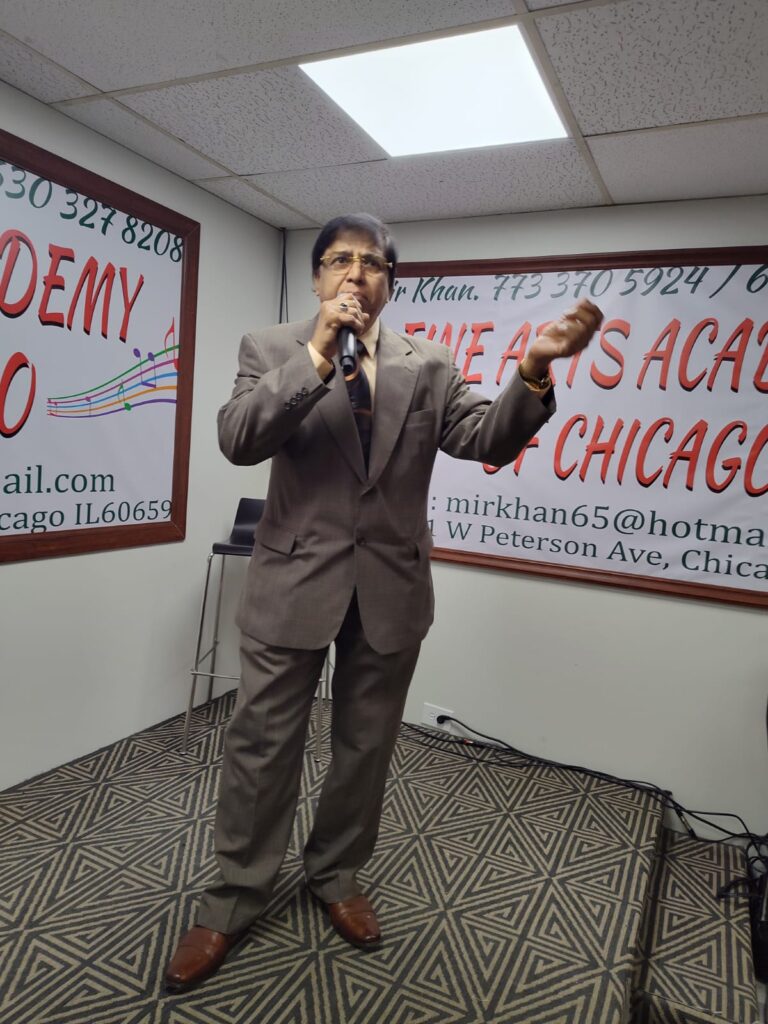The Fine Arts Academy of Chicago hosted a wonderful Musical Night at Peterson Ave, organized by Captain Mohammed Hafeez. Total of 75 talented artists and special guests attended, including Shahbano Rizvi, Syed Afshan, Tahir Hussain, Singer Richa Chand, Tahir Faheem and Mr. Maqsood Band. The event ticket cost $20 per person. The evening was filled with beautiful, soulful music that everyone enjoyed. Friends gathered to listen and have a great time together.