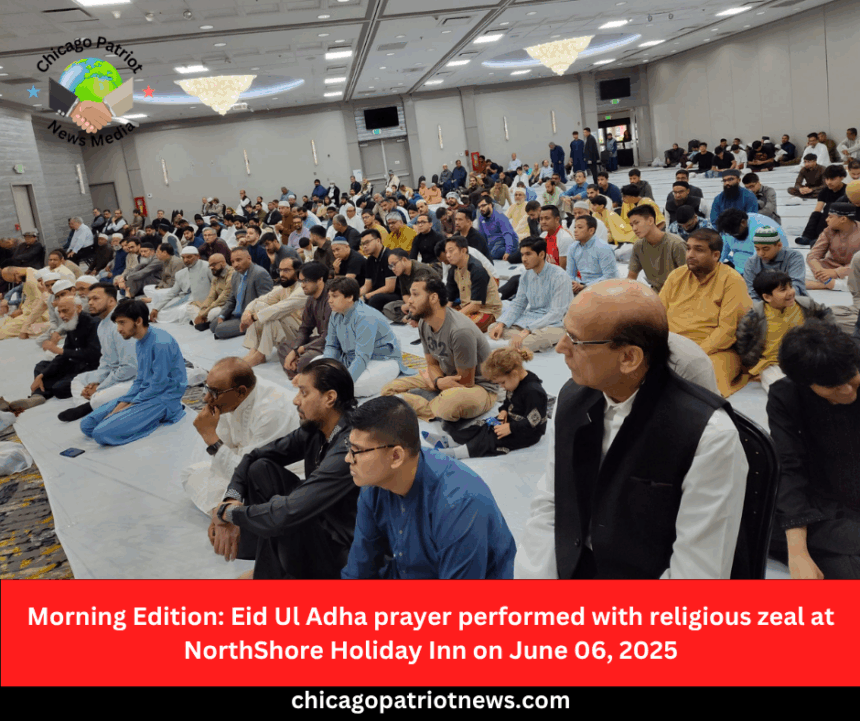 Eid Ul Adha prayer was performed with religious zeal at NorthShore Holiday Inn on June 06, 2025. The prayer was organized by the Central Eid Committee of Greater Chicago area. The key organisers included Amjad Hashmi, Rafiq Zanulabesin, Mazher Ahmed, Razzaq Raja, and M Ilyas Khokhar.