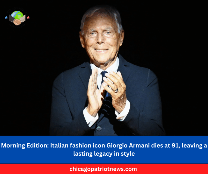 Italian fashion designer Giorgio Armani has died at the age of 91, the Armani Group announced on Thursday. The iconic designer, founder of the eponymous luxury brand in 1975, passed away peacefully at home surrounded by family, according to an official statement by the company. Armani, known affectionately as “Il Signor Armani” by colleagues and collaborators, was dedicated to his craft and worked tirelessly until his final days.