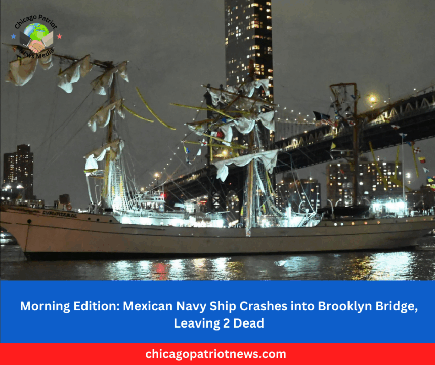 The Cuauhtémoc, a 297-foot-long sail training vessel, struck the underside of the Brooklyn Bridge around 8:26 p.m. while sailing along the East River. The impact caused severe damage to the ship’s towering masts, with eyewitness videos capturing the dramatic moment when the ship’s rigging collapsed.