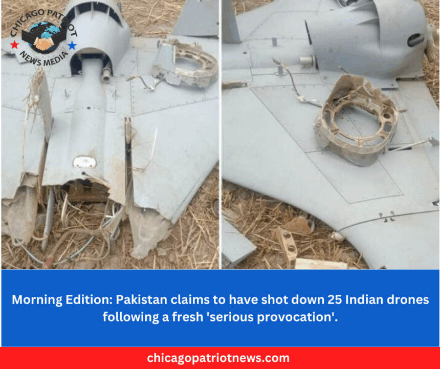 Chicago Patriot News Media > Blog > World News > Morning Edition: Pakistan claims to have shot down 25 Indian drones following a fresh ‘serious provocation’.