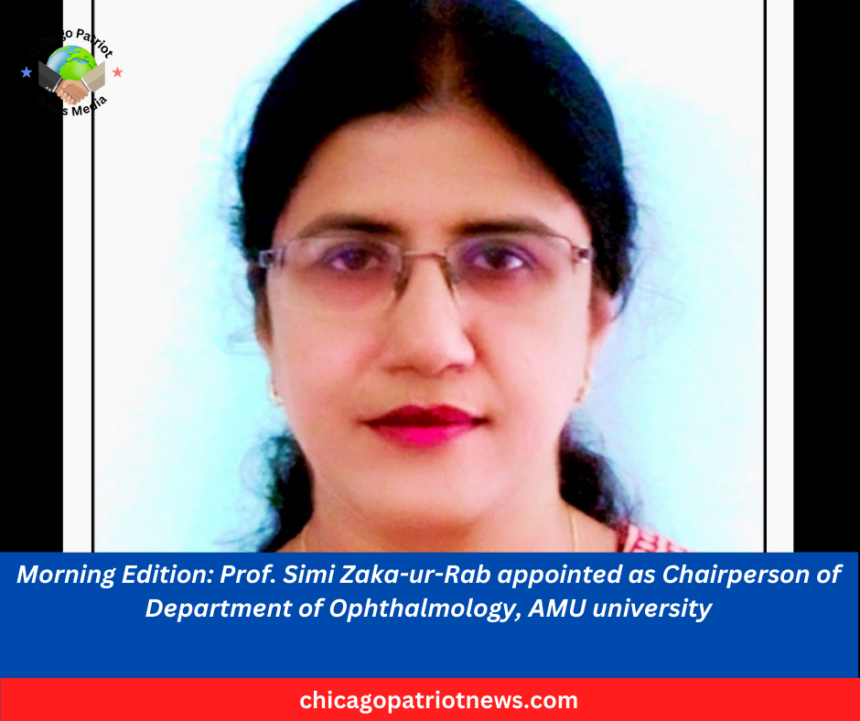 Chicago Patriot News Media > Blog > India > Morning Edition: Prof. Simi Zaka-ur-Rab appointed as Chairperson of Department of Ophthalmology, AMU university