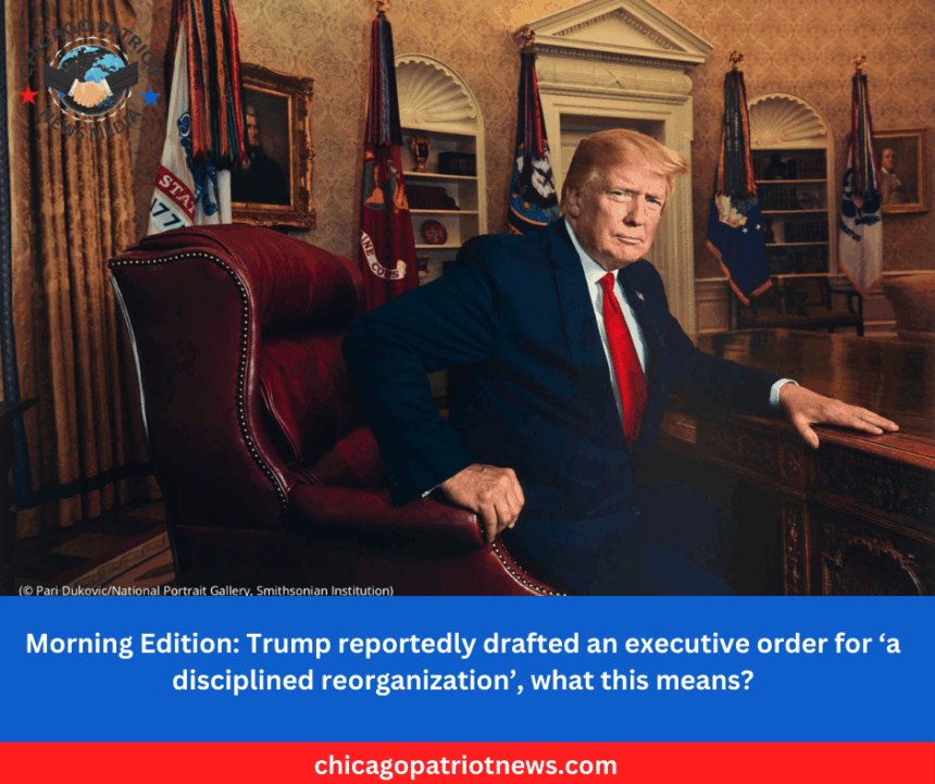 Chicago Patriot News Media > Blog > Politics > Morning Edition: Trump reportedly drafted an executive order for ‘a disciplined reorganization’, what this means?