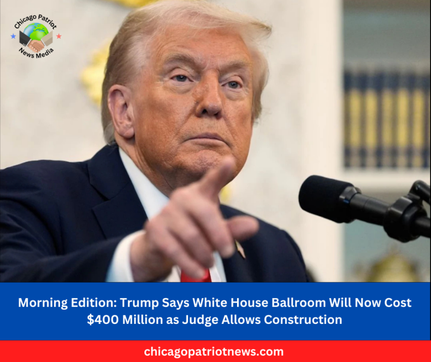 Chicago Patriot News Media > Blog > US News > Morning Edition: Trump Says White House Ballroom Will Now Cost $400 Million as Judge Allows Construction