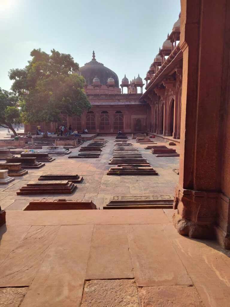 Fatehpur Gate, one of the grand entrances to Emperor Akbar’s 16th-century city of Fatehpur Sikri, stands as a masterpiece of Mughal architecture. Constructed with red sandstone and adorned with intricate geometric patterns and calligraphy, the gate exemplifies Akbar’s vision of blending Persian, Indian, and Islamic design influences.