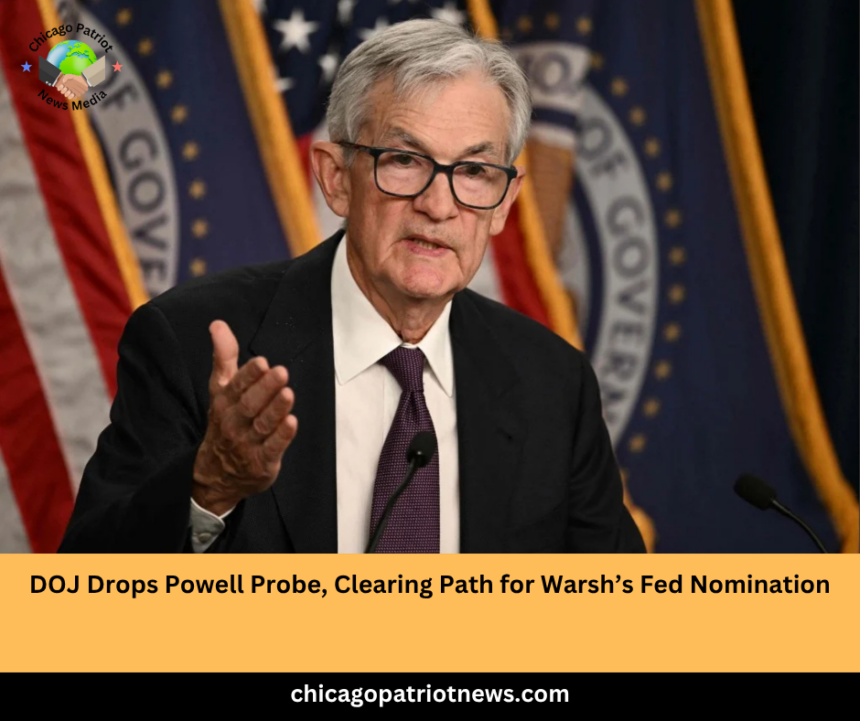 The Justice Department on Friday ended its investigation into Federal Reserve Chair Jerome Powell, a move that could clear the path for President Donald Trump’s nominee, Kevin Warsh, to advance toward confirmation as the next Fed chair. U.S. Attorney Jeanine Pirro said her office was closing the case after the Federal Reserve’s inspector general was asked to review the building cost overruns.