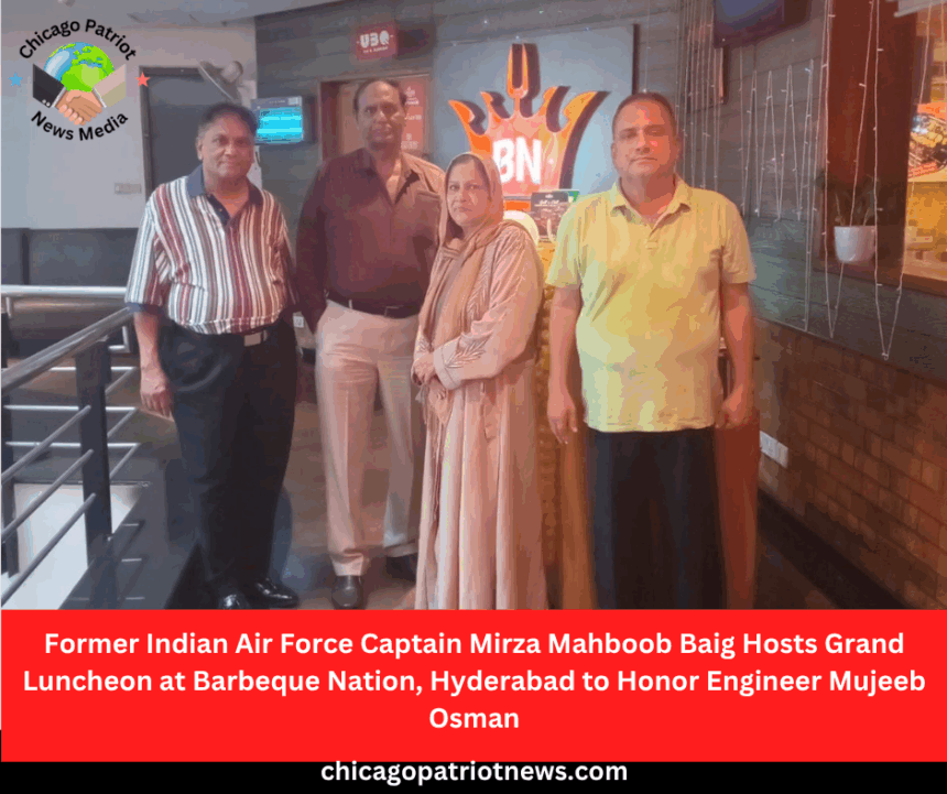 Former Indian Air Force Captain Mirza Mahboob Baig and Zeenath Kouser, currently residents of St. Paul, Minnesota, hosted a grand luncheon at Barbeque Nation, Banjara Hills, Hyderabad. The gathering was organized in honor of Editor-in-Chief Engineer Mujeeb Osman and was attended by numerous friends, and dignitaries.
