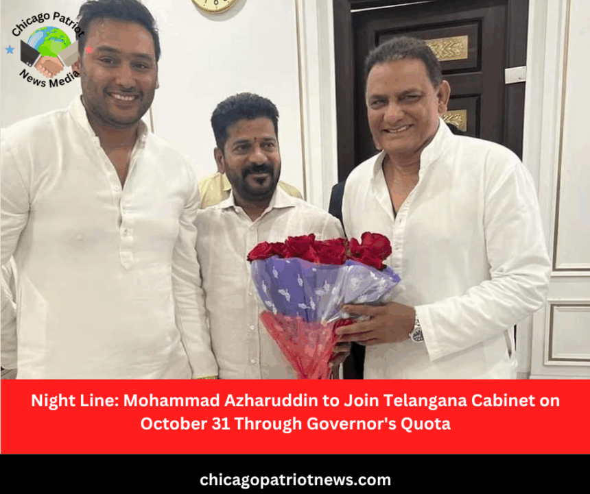 Chicago Patriot News Media > Blog > India > Night Line: Mohammad Azharuddin to Join Telangana Cabinet on October 31 Through Governor’s Quota
