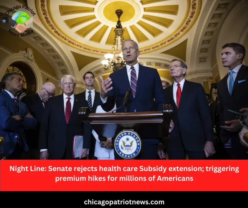 The U.S. Senate rejected competing bills to extend Affordable Care Act subsidies, paving the way for steep premium increases for millions of Americans starting January 1.