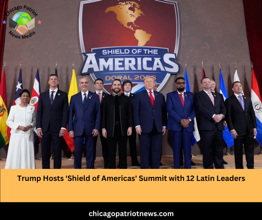 President Donald Trump convened the “Shield of Americas” summit at his Trump National Doral Miami golf resort on March 7, 2026, bringing together leaders from 12 Latin American nations.