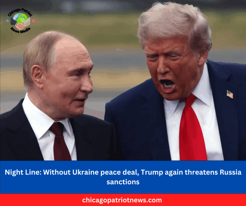 U.S. President Donald Trump renewed a threat to impose sanctions on Russia on Friday if there is no progress toward a peaceful settlement in Ukraine in two weeks, showing frustration at Moscow a week after his meetingwith Russian President Vladimir Putin in Alaska.