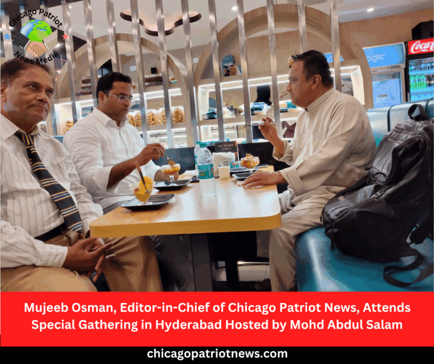 Mr. Mujeeb Osman, Editor-in-Chief of Chicago Patriot News, was recently invited to a special gathering in Hyderabad, Telangana. The event was hosted by former journalist Mohd Abdul Salam, who did BE, MBA, from Chicago University, Chicago, IL USA and support Patric Queen and Congresswoman Jan Shekoski. Mr. Osman’s nephew, Engr. Abul-Majid was also present.