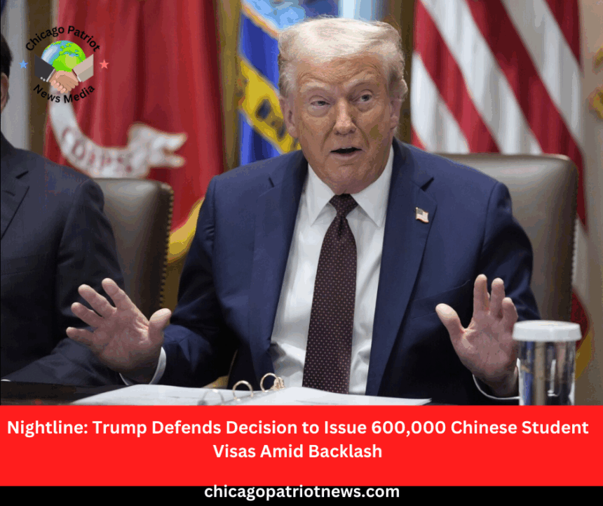 President Donald Trump has defended his decision to allow 600,000 Chinese students to get visas to study in the U.S., despite some backlash from his supporters.