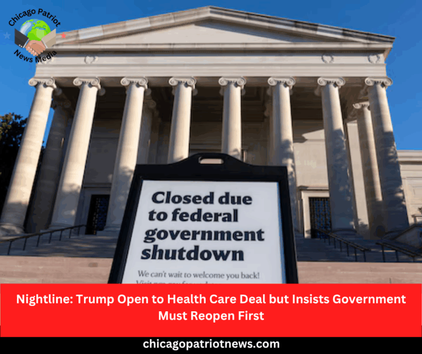 President Donald Trump signaled brief openness to negotiating with Democrats on extending health care subsidies tied to the Affordable Care Act (ACA) but quickly reasserted that any talks must wait until the ongoing government shutdown ends. The dispute centers on enhanced tax credits that lower the cost of ACA health insurance plans, which Democrats have made a central demand for supporting a short-term funding bill.
